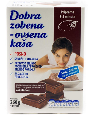 Sastojci: ZOBENE pahuljice 45 %, osušeni glukozni sirup, fruktoza