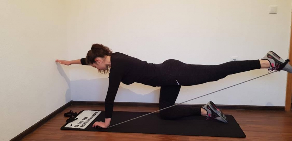 - Podigni nogu do visine kukova i suprotnu ruku do visine ramena.
