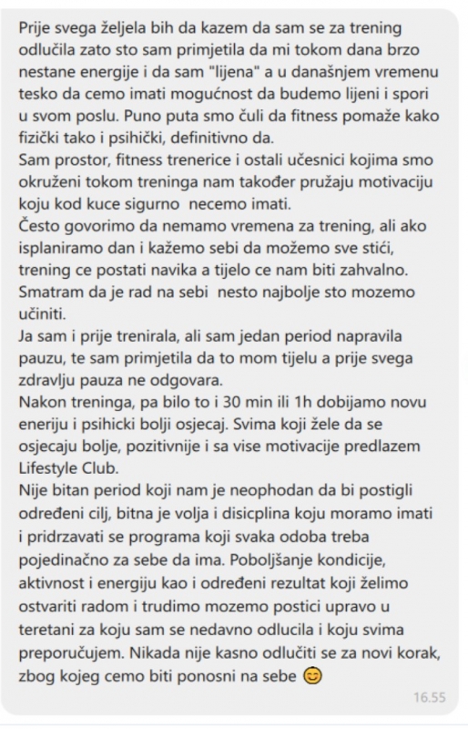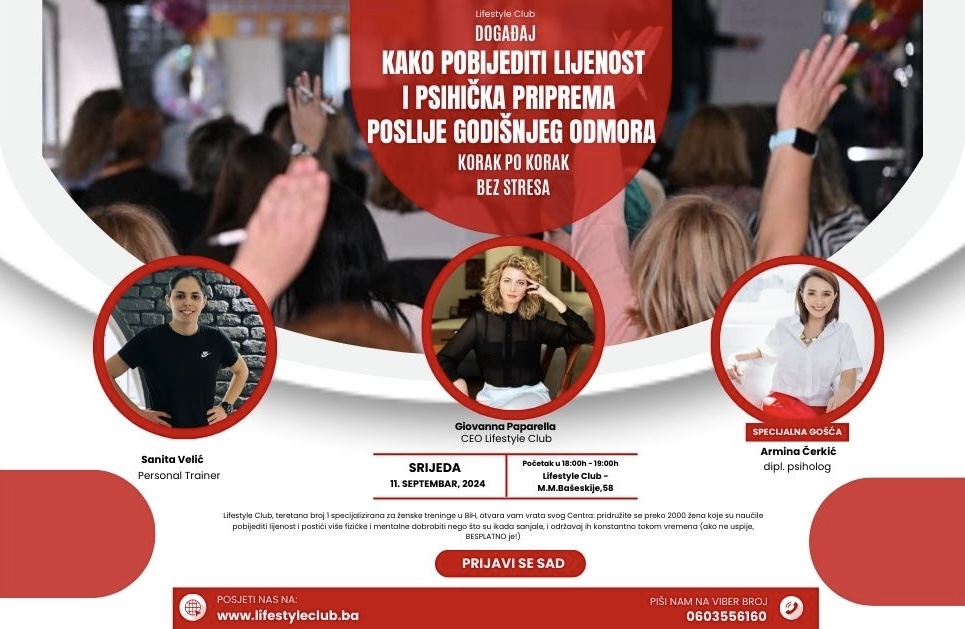Lifestyle Club, teretana broj 1 specijalizirana za ženske treninge u BiH, otvara vam vrata svog Centra: pridružite se preko 2000 žena koje su naučile pobijediti lijenost i postići više fizičke i mentalne dobrobiti nego što su ikada sanjale, i održavaj ih konstantno tokom vremena (ako ne uspije, BESPLATNO je!). |